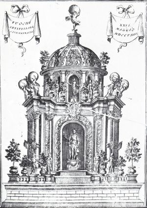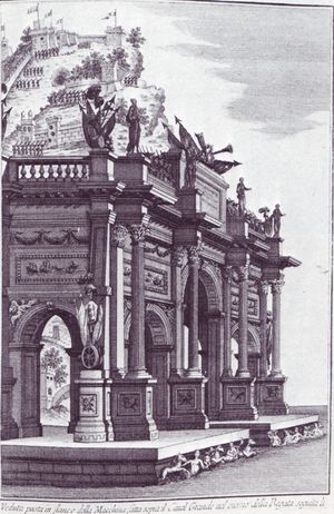 Nelle feste pubbliche predominavano le architetture effimere e in particolare l’arco trionfale o il tempietto, come si rileva dalle incisioni raccolte nel volume Venezia festeggiante di V. Coronelli (Venezia 1709), che ricordano i coevi scenografici altari realizzati da Giuseppe Pozzo.