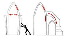 Il Gotico rappresenta un altissimo esempio di creatività e arditezza costruttiva le cui caratteristiche principali sono la leggerezza, la verticalità, la trasparenza, la luminosità. Complessi calcoli permisero di elaborare un sistema di spinte e controspinte, fondato sull’impiego di archi a sesto acuto e di volte ogivali, che consentirono sia di accentuare le altezze, conferendo così all’edificio slancio, eleganza e dinamismo, sia di alleggerire le masse murarie con l’apertura di immense vetrate colorate. Esternamente cuspidi e pinnacoli accentuano il verticalismo delle strutture che, innalzandosi vertiginosamente verso il cielo, invitano il credente nel simbolico viaggio verso il divino.