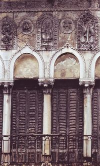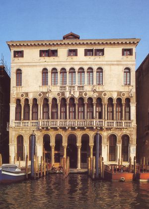 Il palazzo, commissionato dal ricco mercante Marino Contarini, presenta una singolare struttura asimmetrica e, per la particolarità dei materiali usati, fu immediatamente nominato “d’oro”. Marmi dalla ricca cromia naturale sono accostati a lastre dai toni leggermente diversi e all’epoca ogni profilo e ogni elemento in rilievo erano dipinti con il rosso, l’azzurro, la biacca, il nero, l’oro, con effetti che ora stentiamo ad immaginare. Nella facciata i vuoti prevalgono sui pieni e la decorazione a traforo ne esalta la trasparenza e la leggerezza. |