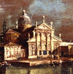 Il pittore (Venezia 1712-93), a differenza di altri vedutisti, operò per tutta la vita a Venezia dove, pur prendendo avvio dalle rigorose strutture compositive del Canaletto, giunse ben presto ad una nuova concezione di veduta. Lontano dall’interesse documentario, l’artista ritrasse la città lagunare sempre con poetica emozione sviluppando quegli aspetti pittoreschie romantici che lo contraddistinsero. Gli spazi cittadini vengono dilatati o ristretti in rapporto alle esigenze emotive del pittore che restituisce quindi un’immagine di Venezia filtrata attraverso il gusto della memoria. “Non è più il paesaggio come ‘veduta esatta’, ma il paesaggio come esperienza individuale legata, non meno che al luogo, al tempo e allo stato d’animo.” (Giulio Carlo Argan)