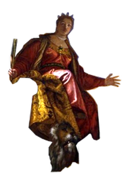 "Presto altri suoni destarono la sua attenzione: era la solenne armonia dei corni, che aumentava con l’avvicinarsi; osservando le gondole che si sistemavano lungo i bordi delle terrazza si mise il velo e, affacciandosi al balcone, scorse nella lontana prospettiva del canale qualcosa che assomigliava a una processione e avanzava galleggiando sulla superficie illuminata dell’acqua: mentre si avvicinava, i corni e gli altri strumenti, si fondevano dolcemente, e poco dopo sembrò che fossero sorti dall’oceano i mitici dei della città; infatti Nettuno, con la sua regina a personificare Venezia, procedeva sulle acque increspate, circondato da tritoni e ninfe marine."