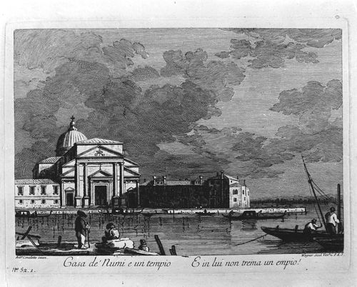 Iscrizione: "Ant.° Canaletto inven. Wagner scul.Ven.a C.P.E.S./Casa de'Numi e un tempio - E in lui non trema un empio!/N.° 52.1"