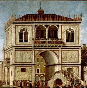 "Ecco lì ancora una volta davanti a lui, l’approdo indescrivibile, l’abbagliante insieme di fantastiche costruzioni che la Serenissima offriva allo sguardo ammirato del navigatore in arrivo: la meraviglia lieve del Palazzo e il Ponte dei Sospiri, le due colonne sulla riva col leone e il santo, il fianco splendente del tempio favoloso, la prospettiva dell’arco e dell’orologio dei Mori. E, guardando, rifletté che giungere a Venezia col treno, dalla stazione, era come entrare in un palazzo per la porta di servizio; e che in nessun altro modo se non per nave, dall’ampio mare, come lui ora, si doveva porre il piede nella città inverosimile tra tutte."
