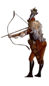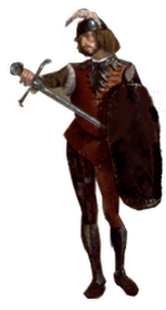 Punto focale della composizione è il giovane guerriero posto al centro in atto di sguainare la spada.