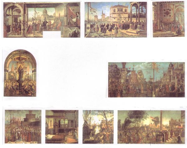 I nove teleri che compongono il ciclo giunsero alle Gallerie nel 1812, dopo le soppressioni napoleoniche, e vi sono esposte secondo la sequenza narrativa anche se il pittore iniziò con il VII telero, L’arrivo dei pellegrini a Colonia, datato 1490, per proseguire nel 1491 con il IX, La gloria di Sant’Orsola, e concludere quindi i rimanenti.