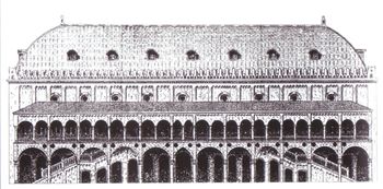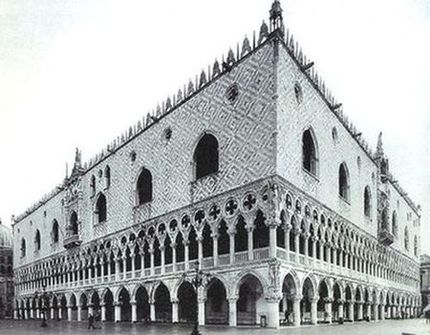 “Unificando la residenza ducale e gli antichi annessi in un imponente complesso quadrilatero, affine a un castello principesco con cortile centrale, e uniformando stilisticamente la stessa decorazione, il palazzo amplificava con estrema assertività formale l’immagine dello stato veneto attraverso la sede delle sue massime istituzioni”. (Concina 1995, pag. 97)