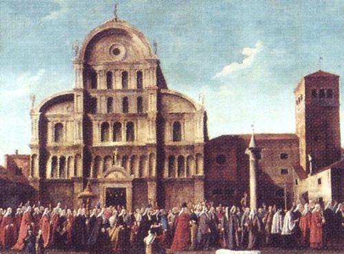 Pur professando un cattolicesimo ortodosso, la città è affollata di chiese e la vita sociale era permeata di religiosità. Venezia mantenne con determinazione la propria indipendenza dalla Chiesa e, al di là dei tanti contrasti con il Papato, questa autonomia le permise di raggiungere un insolito grado di tolleranza religiosa e di apertura al libero pensiero, tanto che per secoli fu chiamata a mediare tra le potenze cristiane e musulmane. Inoltre ne giovarono i commerci e le relazioni diplomatiche: Latini, Greci, Arabi, mercanti di ogni nazionalità e religione erano i benvenuti e gli Ebrei, riuniti dal 1516 nel primo ghetto della storia, vivevano in condizioni migliori che altrove. |