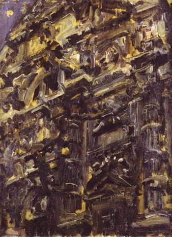 Il pittore, con astratto romanticismo, riprende una porzione di facciata della chiesa barocca di San Moisé e ponendola di sbieco, a fuoco decisamente ravvicinato, ne accentua la plasticità, il gioco chiaroscurale e il dinamismo architettonico.