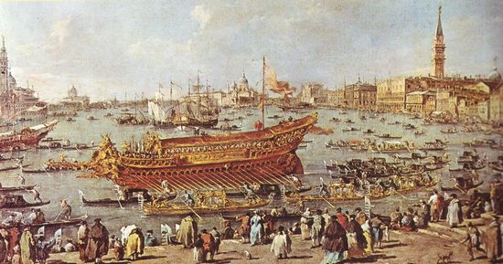 Nell'anno 1000 la vittoria dei Veneti sui Croati e la marcia del doge Pietro Orseolo II sulla Dalmazia segnano la conclusione degli sforzi dei Veneziani sulla via d'Oriente. A ricordare questa fortunata impresa si istituisce la festa della Sensa-Ascensione con il simbolico Sposalizio del Mare: “Noi ti sposiamo, o mare, in segno di vero e perpetuo dominio” diceva il doge lanciando l’anello dal Bucintoro vogato dagli operai dell’Arsenale. “Sposando il mare Venezia abbracciava metaforicamente quel che vi era al di là: sposava la diversità etnica, la molteplicità religiosa, culturale, economica, gettava in qualche modo un ponte verso l’ignoto”. (G. Gullino, Società, economia, istituzioni, pag.110)
